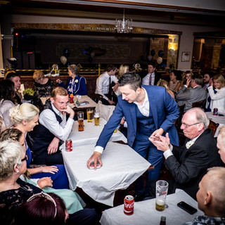 Many forms of entertainment require physical space in a room, which you then have to co-ordinate and liaise with the venue to organise. Close-up magic requires no such thing! No physical space. Completely self contained, I will mix and mingle with guests, performing for groups of people at tables, standing, even outside in a garden or lawn.